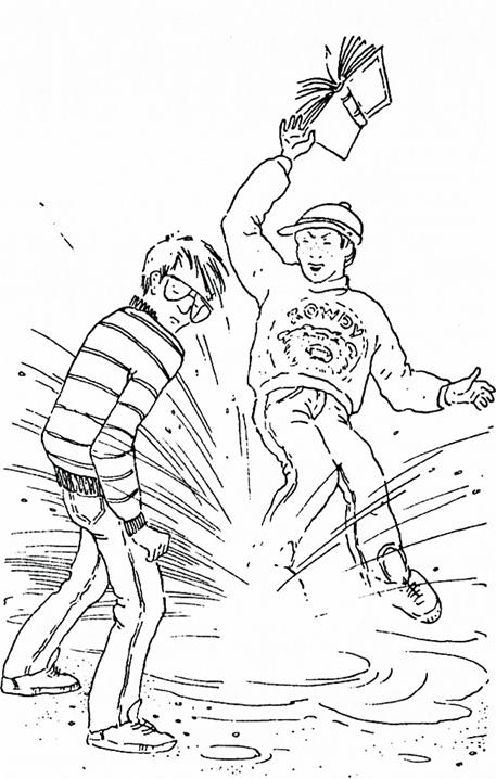 Только она двинулась ко мне, как Дункан топнул ногой в лужу и окатил джинсы Питера грязной водой.