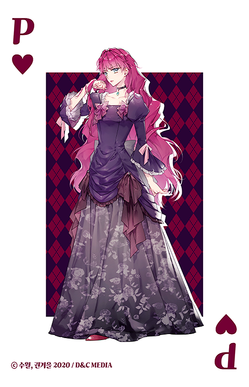 • Темно-розовые 'S'-образные волнистые кудри, больше красные, чем розовые, доходящие до талии.