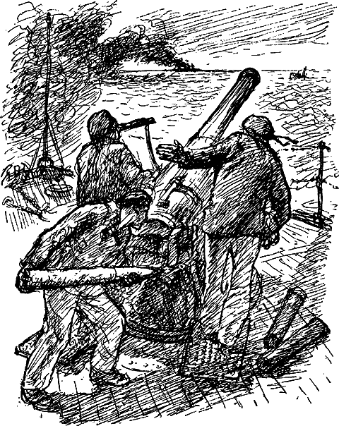 Посреди острова, на вырубке, белогвардейцы сколотили дощатые бараки и обнесли их колючей проволокой. К проволоке не подойдешь — охрана стреляет без оклика.
