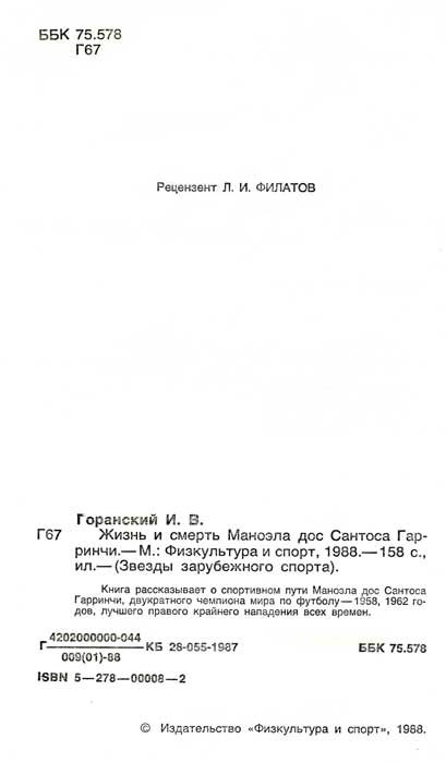 Долгая, трудная пауза и заставила меня после пуститься в расспросы. Выяснилось, что Гарринчу видели в игре московские динамовцы, недавно ездившие в Южную Америку, и у них создалось впечатление, что наблюдать за ним с трибун гораздо приятнее, чем встретить его на поле.