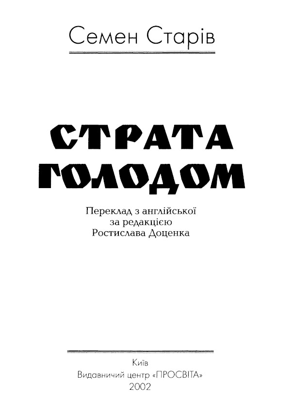 С77 Страта голодом / Пер. з англ. за ред. Р.Доценка. – К.: Вид. центр «Просвіта», 2002. – 272 с.