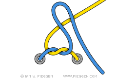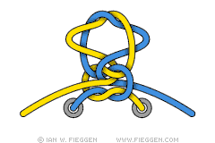 12. Двойной узел Ian Fieggen. Завяжите узел номер 1, но оставьте петли подлиннее, а затем повторите те же операции ещё раз.