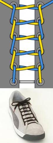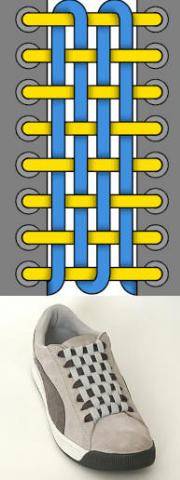 11. Ну а это вообще отдельная песня! Шнуровка без начала и конца. Сотките из шнурков полотно, и вам больше никогда не придётся их завязывать! :)