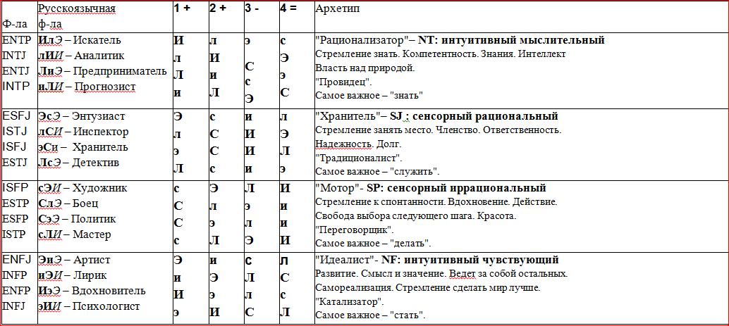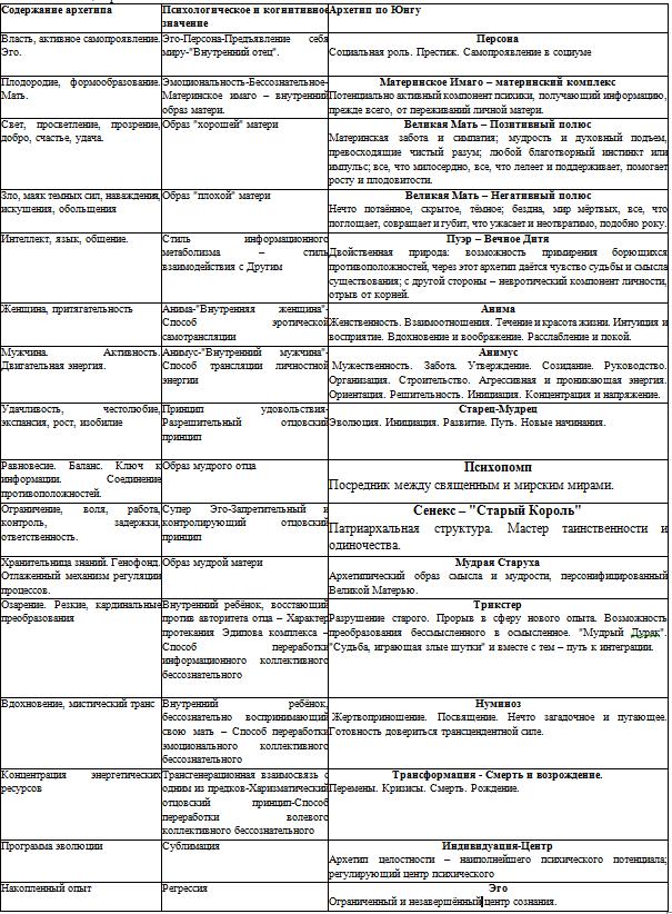 изучите соответствующую ей строку влоть до столбца "Архетип".