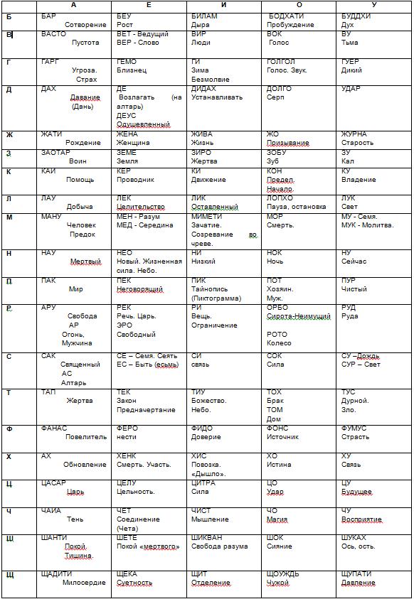 Теперь обратитесь к Таблице 2. Найдите в ней в первом столбце свою латинскую тетраграмму и
