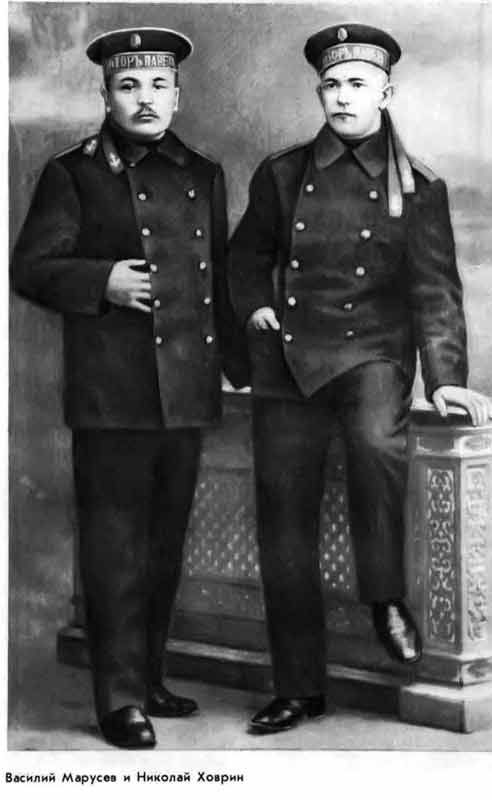 До призыва Марусев был помощником машиниста на паровозе, участвовал в революционной борьбе, имел связь с большевиками, которые вели работу среди железнодорожников. На военную службу его призвали еще до начала мировой войны. В характеристике с последнего места работы о нем говорилось как о человеке не слишком благонадежном в политическом отношении. Может показаться странным, что пролетарию, отнюдь не лояльному по отношению к властям, вдруг доверили защиту монархического строя. Но у царского правительства не было иного выхода — флот нуждался в специалистах, знающих технику. Отбирать их приходилось преимущественно из рабочих. Так взяли и Марусева. Сначала он попробовал «побрыкаться» — заявил даже, что не будет принимать присягу. Василия арестовали и по приговору суда направили в дисциплинарный батальон. Там его в короткий срок научили уму-разуму. Придравшись к совершеннейшим пустякам, Марусеву публично всыпали сто розог. Позднее он сам не без юмора говорил мне, что это явилось для него убедительнейшим доказательством того, что он избрал неверный путь: нет никакого смысла лезть на рожон, открыто пререкаясь с начальством. Жизнь научила его осмотрительности, у командиров не было больше поводов цепляться к нему, и его отнесли к категории «перевоспитанных».