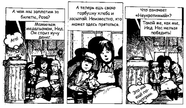 — Ты вор! Злодей! — завопил маленький Нед. — Медальон нужен нам, чтобы заплатить за наш побег в Америку!