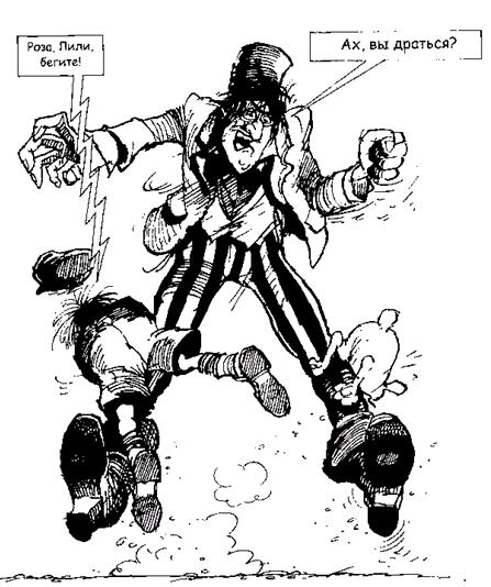 Мальчик и Бусинка набросились на Мака Ножа, пиная, лягаясь, рыча, кусаясь и плюясь, но это им не помогло.
