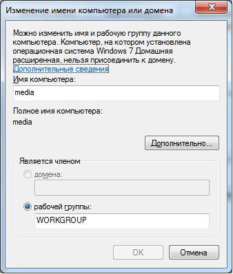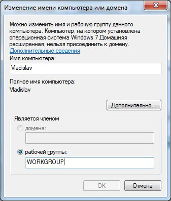 Примечание: По умолчанию во всех версиях Windows 7, Vista и во всех версиях Windows XP за исключением Windows XP Home Edition имя рабочей группы - WORKGROUP.