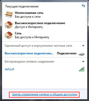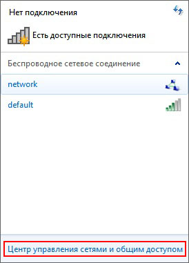 Нажмите ссылку Центр управления сетями и общим доступом.