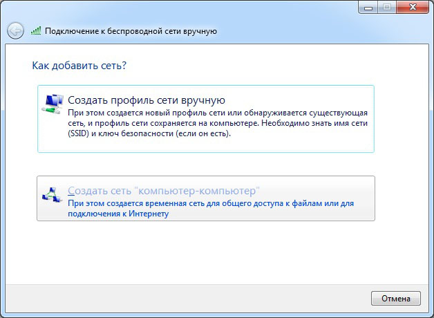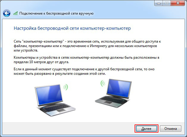 Нажмите Создать сеть "компьютер-компьютер"