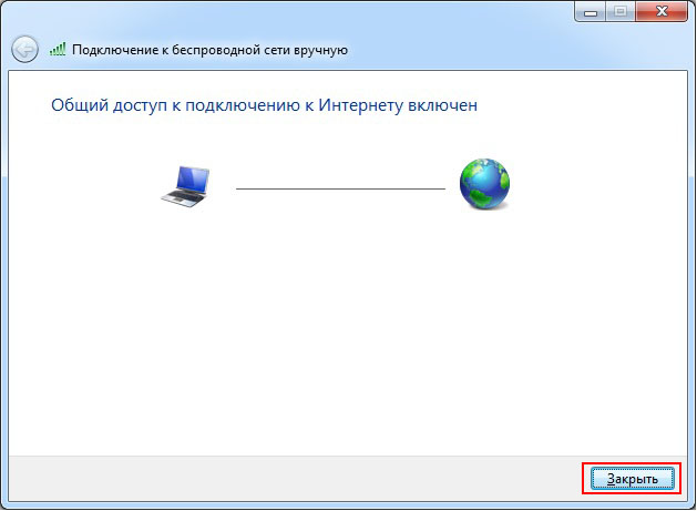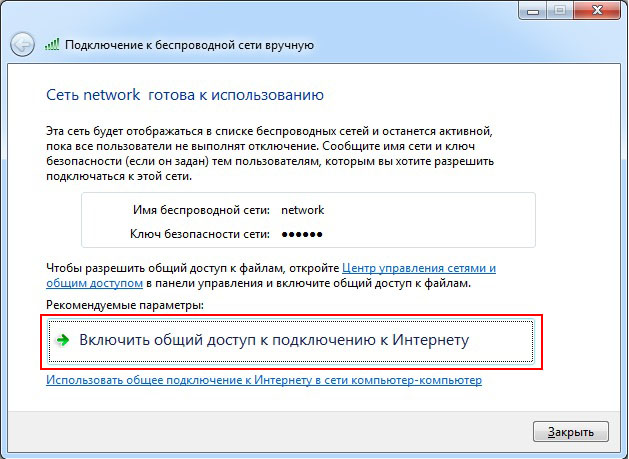 В этом окне нажмите Включить общий доступ к подключению к Интернету.