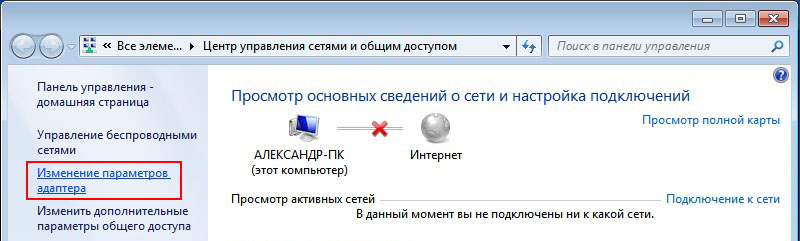 Нажмите по ссылке Изменение параметров адаптера.