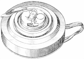 Стальное дно мины (рис. 2) соединено с корпусом закаткой и имеет две заливочные горловины 2, закрытые крышками 3, и скобу 5 с матерчатой ручкой 6 для переноски мины, стакан 16 (рис. 1) под детонатор, закрытый в транспортном положении полиэтиленовой заглушкой 8 (рис. 2), и узел крепления детонатора.