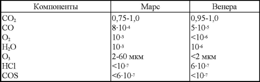 Получение обширной новой информации о свойствах атмосфер и поверхностей Венеры и Марса открывает широкие перспективы с точки зрения решения задач сравнительной метеорологии планет [8, 9]. В этой связи сопоставление данных по Венере и Марсу является особенно интересным. Это касается, в частности, данных о составе атмосфер.