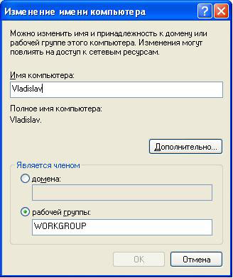 Примечание: По умолчанию во всех версиях Windows XP за исключением Windows XP Home Edition и во всех версиях Windows 7, Vista имя рабочей группы - WORKGROUP.
