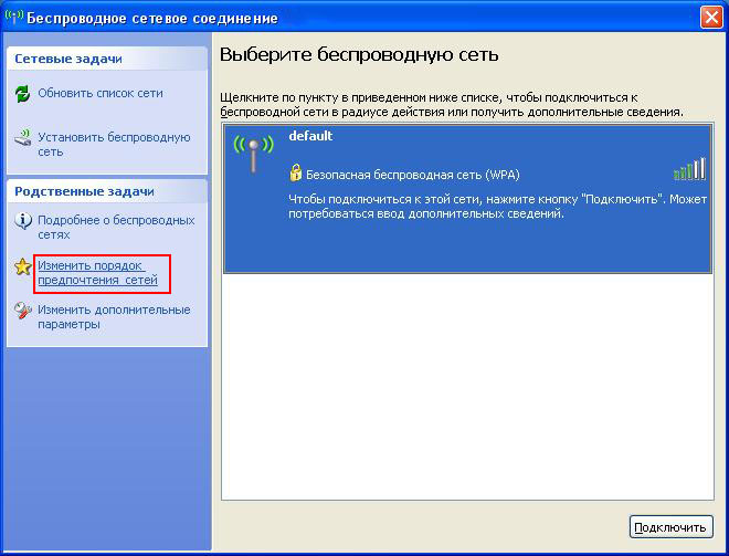 Щелкните по ссылке Изменить порядок предпочтения сетей.