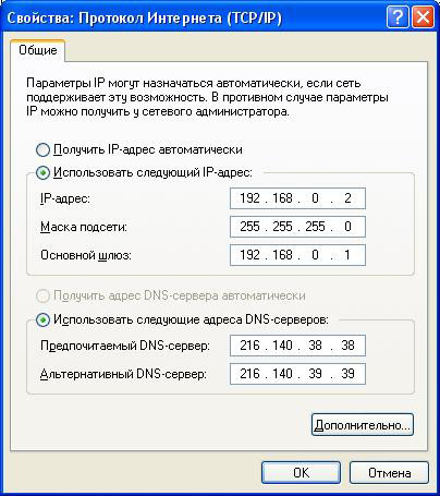 Важно: Если главный компьютер сети работает под управлением Windows 7, то IP адрес основного шлюза нужно указать 192.168.137.1