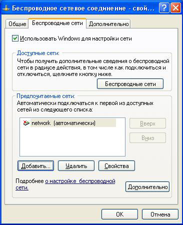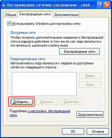 На вкладке Беспроводные сети нажмите кнопку Добавить…