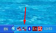 Примечание: Если этот значок не отображается то возможно он скрыт и чтобы его увидеть нужно щелкнуть по стрелочке. Если этого значка нет в области уведомлений, то возможно ваш Wi-Fi адаптер выключен программно и чтобы его включить нужно зайти Пуск - Панель управления - Сетевые подключения и щелкнуть два раза по значку беспроводного соединения Wi-Fi. Также может случиться что у вас не установлен драйвер на Wi-Fi адаптер или этого адаптера вообще нет.