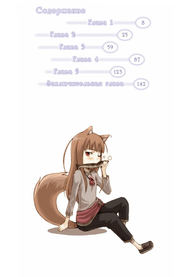 Как Лоуренс и рассчитывал, Хоро при этих словах гордо хмыкнула и убрала хвост обратно под покрывало; на лице ее было написано: «ну ладно, ладно, сдаюсь».