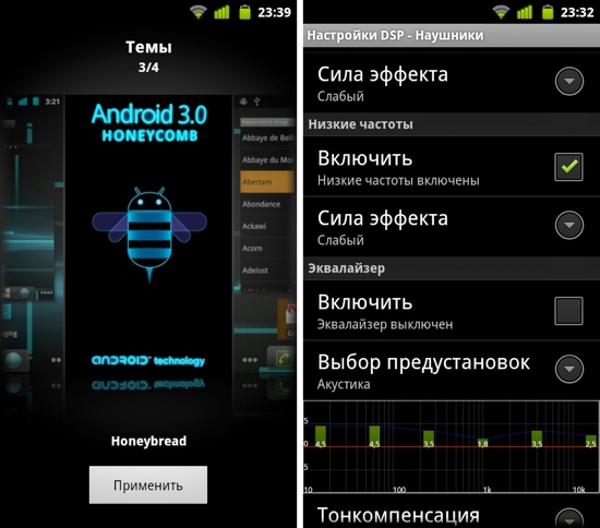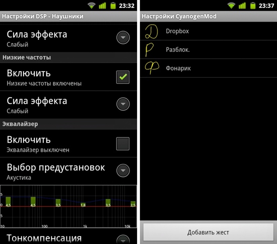 CyanogenMod 7.1. Базируется он на ядре Android 2.3.7 — возможно, последнем обновлении Android Gingerbread 2.3.x перед переходом на грядущие версии 2.4 и 4.0. Также в него включена полная поддержка русского языка. Но этот проект может привлечь пользователя не только свежим номером версии Android. Количество полезных настроек и функций может дать фору по функциональности и стабильности многим «заводским» и «официальным» версиям прошивок от производителей.