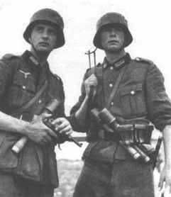 Шлем на месте. Последняя проверка амуниции и снаряжения. Пояс с лопаткой, противогазная сумка, гранаты в подсумках, ремень, сапоги, карабин — все в полном порядке. Приказы уже не нужны. Эти люди знают, что такое война против укреплений. Капрал из отделения саперов (штурм-пионеров), с серебристыми нашивками за ранения, тащит на себе целый тюк зарядов взрывчатки, похожих по виду на деревянные жерди. И эти жерди он не выпустит из рук даже перед лицом смерти. Командир штурмовой группы еще раз обводит взглядом своих людей, лучших солдат немецкой армии, испытанных и проверенных в прошлых боях. Прыгает секундная стрелка. Руки все крепче сжимают карабины. Исчезает неприятное чувство пустоты в желудке. На лицах — только решительность и твердая воля к победе. Беру микрофон — оружие репортера, иду поближе к танкам. Первые минуты сражения обязаны быть зафиксированы в репортаже. 22 июня, время 3 часа 5 минут утра. Это время начала войны!
