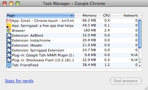 Тем более что браузер Chrome фактически сам по себе является операционной системой. Особого типа, конечно, для запуска веб-приложений, но тем не менее со всеми архитектурными признаками ОС. В Chrome каждая вкладка (tab) — это совершенно самостоятельный процесс. За работой множества процессов-табов следит диспетчер задач Chrome.