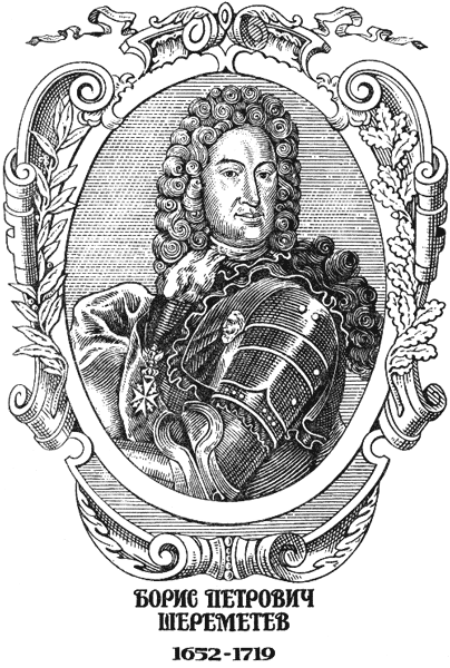 ШЕРЕМЕТЕВ (Борис Петрович, граф) — фельдмаршал, знаменитый сподвижник Петра Великого, родился в 1652 г. В 1669 г. был на службе у царя Алексея Михайловича комнатным стольником. В 1686 г. был послан с окольничим Чаадаевым в Варшаву для ратификации «Вечного мира» с Польшей. В 1695 г. вместе с Мазепой очень удачно воевал турецкие города в устьях Днестра. В начале Северной войны был послан под Везенберг наблюдать за шведами и при их приближении отступил к Нарве. Во время нарвского сражения конница Шереметева бежала с поля боя. Петр, который сам заранее уехал из-под Нарвы, прислал ему ободрительное письмо и приказал двигаться в пределы шведские. Шереметев осадил Мариенбург, но был отбит Шлиппенбахом; зато в поле русские одержали верх. За победу при Эрестфере награжден был чином фельдмаршала. В 1702 г. при Гуммельсгофе разбил наголову войско Шлиппенбаха, разорил Лифляндию, взял 8 городов, завоевал Ингрию. В 1703 г. им был взят Нотебург, при участии Петра. Оттуда он пошел вниз по правому берегу Невы и взял Ниеншанц. Затем Шереметев взял Копорье, Ямбург и этим закончил покорение Ингрии. В 1704 г. Шереметев осадил Дерпт, который в начале штурма сдался. В 1705 г. Шереметев потерпел поражение от войск Левенгаупта.