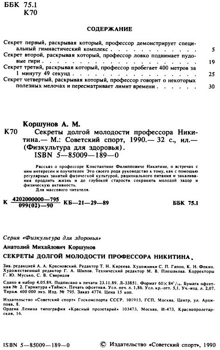 — И да и нет. Дело в том, что зарядка, которую транслируют ежедневно по радио и телевидению, во-первых, слишком незначительна по нагрузке, а во-вторых, отнюдь не отвечает тем целям, которые преследую я. Это, скорее, гимнастичка для пробуждения — не более. Моя гимнастика может длиться от 30 минут и до часа, в зависимости от самочувствия… И не пытайтесь упрекать меня в расточительстве времени. Час-два в день для физических упражнений может и должен находить каждый, даже самый занятой человек. Мы все равно к этому придем.