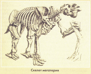 Мегатерии, кости которых Дарвин доставил в Англию для исследования, общим строением тела более всего напоминали ленивцев. Но они далеко не были такими безобидными, как современные представители этого семейства. Длина тела мегатерия достигала 8 м. С учетом того, что эти милые животные, скорее всего, имели обыкновение подниматься на задние лапы, опираясь на мощный хвост, зрелище должно было быть впечатляющее. К тому же передние лапы мегатерия были вооружены острыми серповидными когтями до 17 см в длину, так что постоять он за себя мог. Правда, судя по строению зубов, гигантские ленивцы питались растительной пищей, а страшные когти в основном использовали для захвата и притягивания к земле веток.