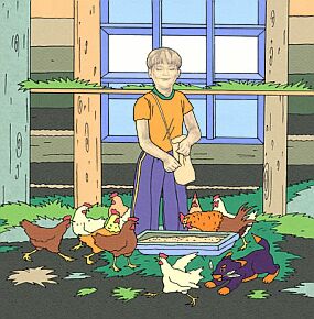 Алеша с утра до вечера был занят. Он с удовольствием помогал бабушке кормить кур.