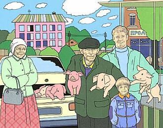 Правда, Алеше не пришлось тащить мешок за спиной. Папа вызвался свозить их с бабушкой на базар и даже принял активное участие в выборе поросенка.