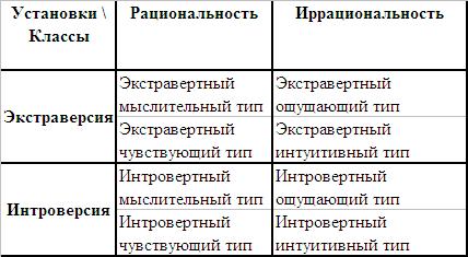 Для более наглядного представления типологии сведем в таблицу те признаки, по которым Юнг различал свои психологические типы.