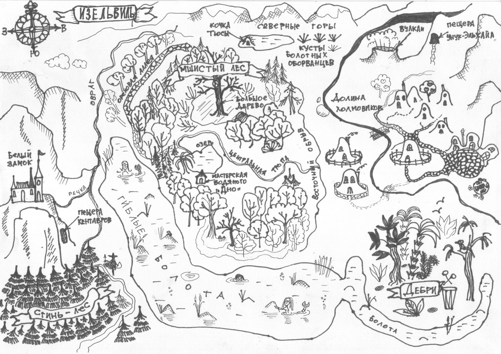 Изельвиль хоть и был крошечным, однако вмещал в себя немало ливнасов, моркусов, леших, водяных с кикиморами и даже парочку кентавров. Кроме того, все в королевстве совершенно точно знали, что в мрачном неприветливом лесе, который раскинулся на обочине государства, обитают странные существа. Идти с ними знакомиться не больно-то хотелось — все, кто отважился в тот лес пойти, оттуда не возвращались. Так тот лес в народе и прозвали — Сгинь-лес.