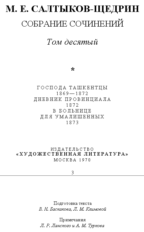 Исследование о «Ташкентцах» распадается на две части: "Ташкентом приготовительного класса" и "Ташкентцы в действии". Настоящим томом оканчивается первая часть, составляющая сама по себе отдельное целое. Я отнюдь не имею претензии утверждать, что в представляемых здесь вниманию читателя параллелях исчерпывается все, что могло бы подойти под эту рубрику, но ежели бы я пошел еще далее в воспроизведении различных типов «ташкентства», то работе моей, пожалуй, не было бы конца. Притом же в намерениях моих было написать ежели не роман в собственном значении этого слова, то более или менее законченную картину нравов, в которой читатель мог бы видеть как источники «ташкентства», так и выражение этого явления в действительности. Поэтому первую часть я посвящаю биографическим подробностям героев ташкентства, а во второй — на сцену явится самое "ташкентское дело", в создании которого примут участие действующие лица первой части. Ввиду этого я нашел, что привлечение слишком большого количества элементов, хотя и однородных по своим целям, но крайне разнообразных в своих проявлениях, могло бы загромоздить мой труд множеством лиц, связь между которыми, быть может, представилась бы читателю не вполне ясною. Тем не менее я сознаю, что отсутствие некоторых типов (как, например, ташкентца-педагога, ташкентца-благотворителя и т. п.) составляет пропуск очень заметный. Но я постараюсь познакомить читателя с этими типами во второй части, выводя их постепенно, в роли эпизодических лиц.