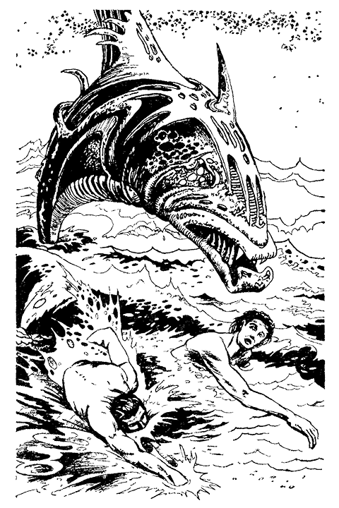 — Хорошо, что большинство солдат погибают, не дожив до старости, — начал он, устраиваясь поудобнее в кресле и поглаживая колено тонкой, дрожащей рукой. — Именно об этом я думал в одно холодное утро, в год, когда началась война. Вы помните, когда я вернулся домой в Нью-Йорк… да, я называю это «возвращением домой», то обнаружил, что я чужой. Большинству людей, в отличие от вас, доктор, не хватает времени для старых вояк. Мне нечего было делать. Я был бесполезен, как вышедшее из строя ружье. В то сырое, ветреное утро — это было 13 апреля — я уселся на скамью в Центральном парке. Мне было холодно. Я решил, что прожил уже слишком долго… Поднимаясь со скамьи, чтобы вернуться в комнату и взять свой старый пистолет, я вдруг вспомнил! Это выглядит несколько странным — говорить «вспомнил» о том, что еще не случилось и, может быть, не случится еще на протяжении тысячи лет или более. Но я не знаю другого слова. Я говорил об этом с учеными, доктор. Вначале с психологом, с бихевиористом. Он смеялся. «Это не согласуется, — говорил он, — с концепциями бихевиоризма. Человек всего лишь машина. Все, что делает человек, — это не более, чем механическая реакция на стимулы». Но если так, то существуют стимулы, о которых бихевиористы и не подозревают. Был и второй человек — он не смеялся. Это физик из Оксфорда. Он читал лекции по эйнштейновской относительности. Похоже, он поверил мне — задавал вопросы о моих… воспоминаниях. Но я немногое мог ему рассказать. То, что он сказал, слегка облегчило мне душу. Я хотел поговорить об этом с вамп, доктор, но боялся, что вы усомнитесь в моем рассудке. Как бы там ни было, этот оксфордец сообщил мне, что Время и Пространство в отдельности друг от друга не существуют. Они, по сути, не очень-то отличаются, проникая одно в другое. Он говорил о континууме, о двунаправленном времени и о теории множественности вселенных. Я ничего не понял. «Нет существенной причины, — сказал он, — чтобы мы не могли «помнить» будущее. Теоретически разум наш должен обладать способностью прочерчивать мировые линии в будущее так же легко, как и в прошлое. Предчувствие, предвидение, грезы — это порой воспоминания о том, что будет». Всего, что говорил этот человек, я не понял, потому что это было во многом неясно и непривычно. Но он меня убедил — то, что со мной случилось, не было проявлением безумия. Он хотел узнать побольше из того, что я помнил. Но это было так давно — остались лишь смутные обрывки воспоминаний. Думаю, что все люди обладают этими способностями, просто у меня они оказались более развитыми. Я всегда страдал предчувствиями, непонятное ощущение предупреждало меня об опасности. Может быть, именно поэтому я и жив. Но первое отчетливое воспоминание о будущем пришло в тот день, в парке. Прошло много месяцев, прежде чем я научился вызывать эти воспоминания. Я думаю, вы этого не поймете. Попытаюсь описать то первое ощущение в парке. Я поскользнулся на мокрой мостовой и упал спиной на скамью. И внезапно я оказался совсем не в парке… Я все еще падал. Я находился в том же положении, но уже не на Земле. Повсюду вокруг меня была исковерканная местность; сверкали вспышки, высвечивая тысячи воронок на равнине, окольцованной огромными горами. Солнце горело в небе, которое было черным, как в полночь, и полным звезд. В небесах было и другое тело — огромное и зеленое. Над горами