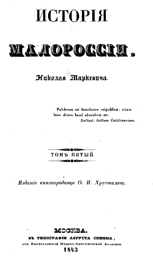 Это дело, об котором было много споров; а потому я написал особенную статью, которая будет помещена в изготовленной мною книге: О Малороссии.