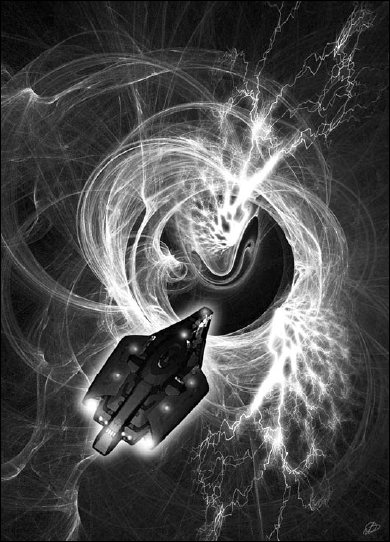И Эрма посмотрела. Все виртуальные изображения, всплывавшие на экранах, были наполнены сиянием, которое не мог убрать даже терапроцессор Эрмы. Эти изображения выглядели слишком хорошо, чтобы быть реальными. Правильные геометрические фигуры путались и переплетались, плавая вокруг вращающегося бублика. Завитки пространства-времени разлетались в разные стороны, излучая волны со злобным красным шипением.