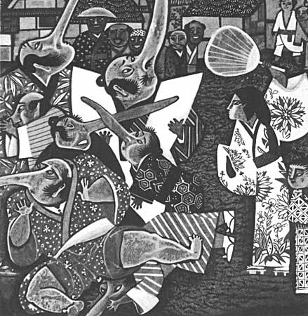 Смотрит Вакамацу: не птица это, а тэнгу. Нос у него длинный, как рукоятка у меча. На крючковатых пальцах когти.