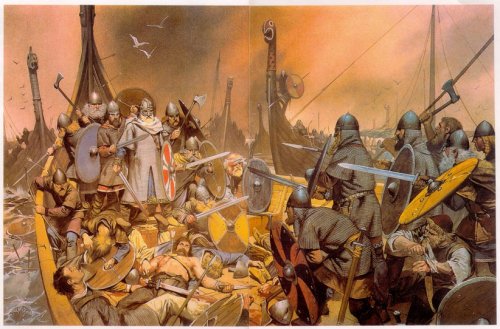 «Эпоха викингов» началась 8 июня 793 года по Р.Х… В этот день к островку Линдисфарне у восточного побережья Шотландии причалили ладьи необычной постройки — с высоко задранными носом, украшенным грозно ощеренной драконьей головой, и кормой, под большими алыми парусами. Всего через мгновение монахи местного монастыря, вышедшие встретить незваных гостей, очутились в адском пекле. Сошедшие на берег вооруженные до зубов свирепые белокурые исполины в железных шлемах, с длинными копьями, кроваво-красными щитами, мечами и секирами, с ужасным, львиным рыком ринулись на штурм монастыря. Охваченные священным боевым неистовством, они выли по-волчьи и ревели по-медвежьи, визжали по-кабаньи, свирепо скалились, дико вращали глазами и грызли в бешенстве собственные щиты. Своими грозными секирами заморские пришельцы разнесли в щепы ворота монастыря и вмиг разграбили церковное имущество, тщательно обшарив все углы. Всех, кто пытался оказать им сопротивление, русые гиганты убивали на месте или же, под громкий хохот, выгоняли на берег и топили в море, не забыв при этом сорвать с них одежду, столь ценную в «полнощных странах» Северной Европы.