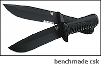 Боуи от Benchmade, да и вообще любой нож с фиксированным клинком от этой фирмы — это всегда интересно. Особенно теперь, когда новый Nimravus безнадежно испорчен зубастой дюралевой рукоятью. На его фоне Benchmade CSK выглядит отличным деловым ножом вменяемого дизайна. Добавьте сюда черненый клинок из модной стали D2, хорошие тактические ножны и приятную рекомендованную цену 125$ — и вот вам потенциальный лидер рынка.