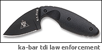 Ka-Bar немного устал продавать свои ломики и занялся ментами и копами. Новый нож TDI Law Enforcement содержит в названии прямое указание на область применения — для сил правопорядка. Забавный текст на сайте производителя повествует о том, что TDI — это оружие последнего шанса на случай, если не удается добраться до пистолета. Более чем странное назначение для ножа, которым можно резать, но сложно воткнуть: по форме TDI больше всего напоминает очень маленький бумеранг.