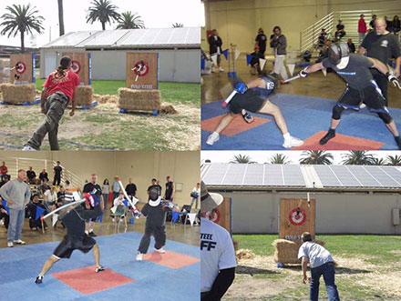 В этом году уже во воторой раз Cold Steel устроила для своих фанатов открытые соревнования. Народ оттягивался по полной программе: дрался на ножах и мечах, метал в цель все, что может воткнуться, и получал за это призы. Даже метание саперных лопаток входило в официальную программу соревнований.