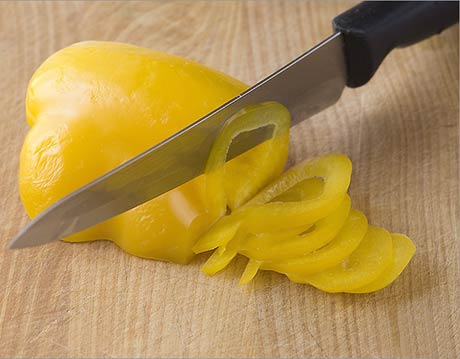 В-третьих, хорошо и правильно наточенный нож гораздо проще поддерживать в рабочем состоянии. Достаточно лишь регулярно править его, и это занимает совсем немного времени. А править ножи надо регулярно. Ведь такие обычные продукты, как овощи и особенно зелень в своём составе содержат массу клетчатки (читай, целлюлозы). А клетчатка — превосходный абразив, быстро стачивающий режущую кромку.