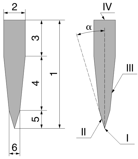 4 — плоское лезвие, клиновидные спуски, традиционная режущая кромка. Самый распространённый вариант профиля. Позволяет варьировать угол заточки. Нож достаточно прочен, сравнительно легко режет;