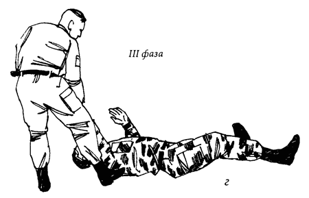 Финал: упавшему противнику наносится поражающий удар (рис. 48г).