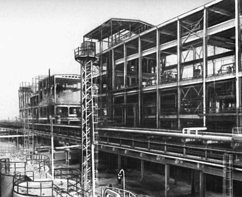 Этаже'рка (франц. étagere, от étage — ярус, ступень), инженерное сооружение на промышленном предприятии, предназначенное для размещения и обслуживания технологического оборудования. Наибольшее распространение Э. получили на предприятиях химической, нефтеперерабатывающей и пищевой промышленности. Э. могут располагаться снаружи промышленных зданий (см. рис. ) или внутри них (например, в производств, зданиях павильонного типа). В практике промышленного строительства в СССР в зависимости от технологических процессов применяют одно- и многоярусные Э. с высотой ярусов от 3,6 до 7,2 м. Несущей конструкцией Э. обычно служит каркас, состоящий из колонн и ригелей. Элементы каркаса выполняются из сборного железобетона (для Э., располагаемых на открытых площадках) или из стали (для Э. внутри зданий). В стальных Э. перекрытия обычно сборные железобетонные. Оборудование, располагаемое на Э., опирают на ригели каркаса, используя для передачи нагрузок второстепенные балки, укладываемые между ригелями. Лёгкое оборудование может опираться непосредственно на плиты перекрытий. Перспективно использование Э., конструкции которых допускают их монтаж укрупнёнными блоками.