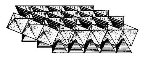 Рис. 8. Слой из плотноупакованных октаэдров и тетраэдров в отношении 1:2.