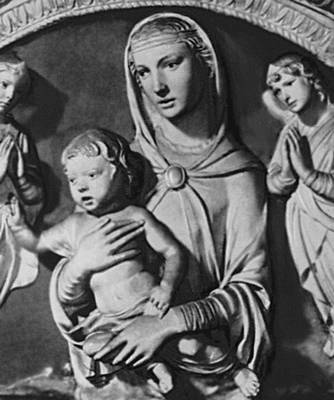 Лука делла Роббиа. «Мадонна с ангелами». 15 в. Деталь Люнеты Палаццо деи Капитани ди Парте Гуэльфа во Флоренции.